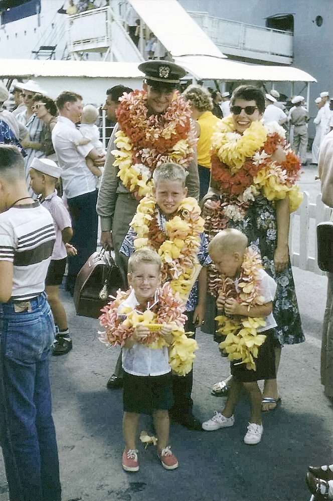 (15) Dr. Gerard B Odell, wife Louise Mitchell Odell, and sons Gerard, Timothy and John, September 1956, departure from Guam, privately held by Malissa Ruffner, [address for private use], Baltimore, Maryland.