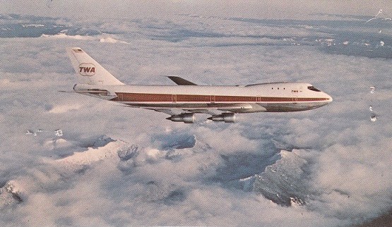 The back of the postcard reads: “Space, comfort, luxury. The TWA 747 has everything a passenger could ask for — and more. A dramatic design concept that offers a new experience in flying. An airliner as exciting as tomorrow — serving the needs of travelers of today.”