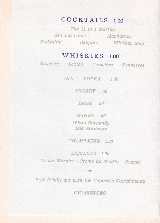 [Editor’s Note: Below is a slide show of our menu – and I assure you that we were NOT in first class – it’s a gentle reminder of what air travel used to be….]